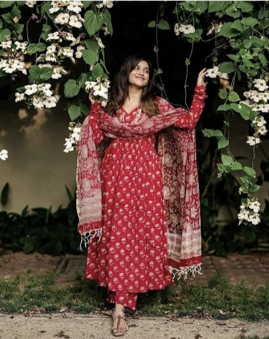 ELEVATE UR STYLE IN OUR CLASSY COTTON ANARKALI SET WITH COTTON MALMAL DUPATTA IS MUST HAVE IN EVERY CLOSET