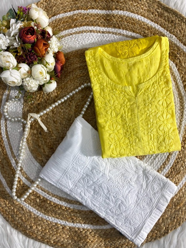 Experience the elegance of Chikankari with our stunning fancy embroidery heavy-work summer special kurti! Crafted from soft dyed dobby cotton, this kurti is designed for both comfort and style.