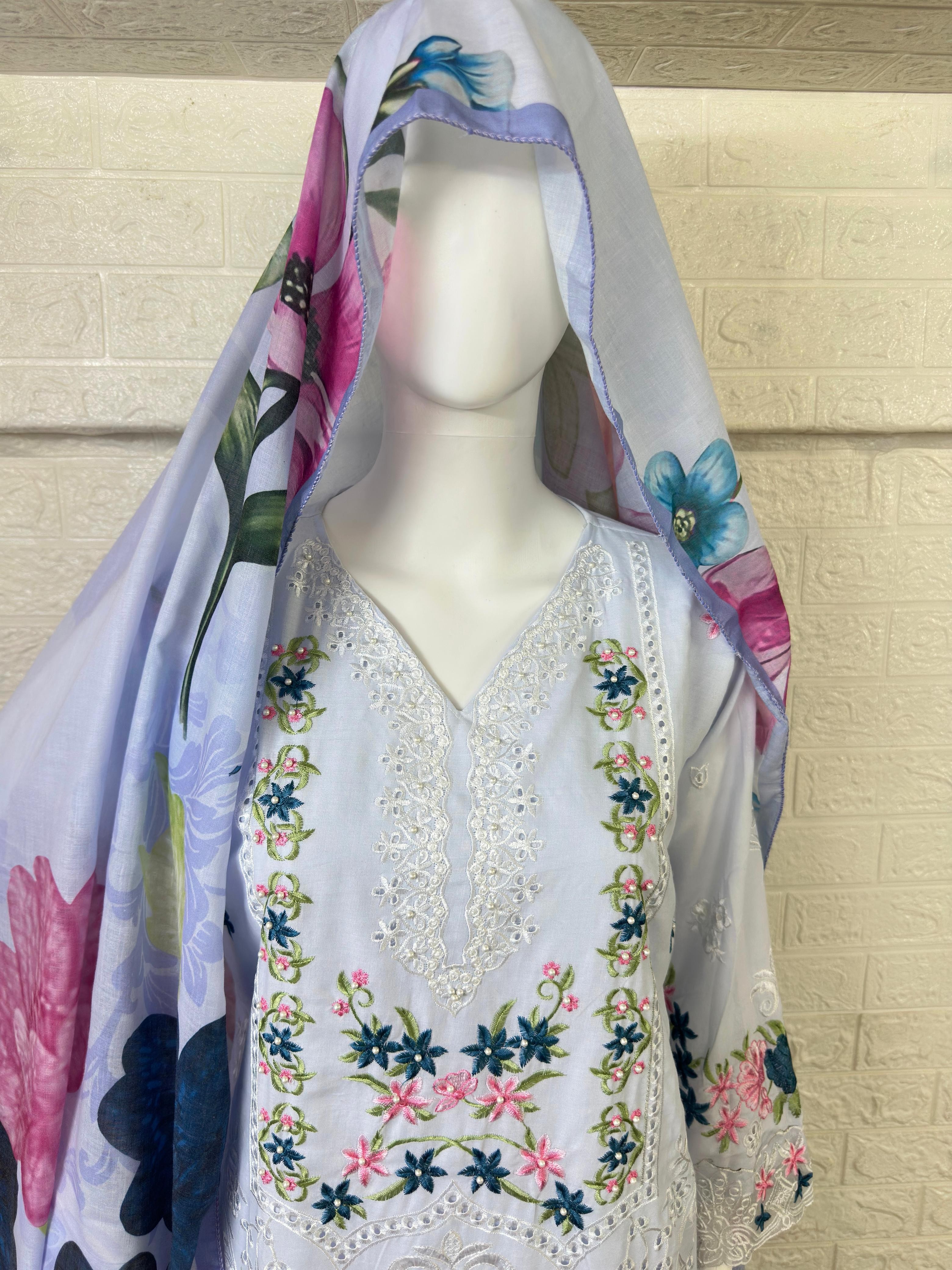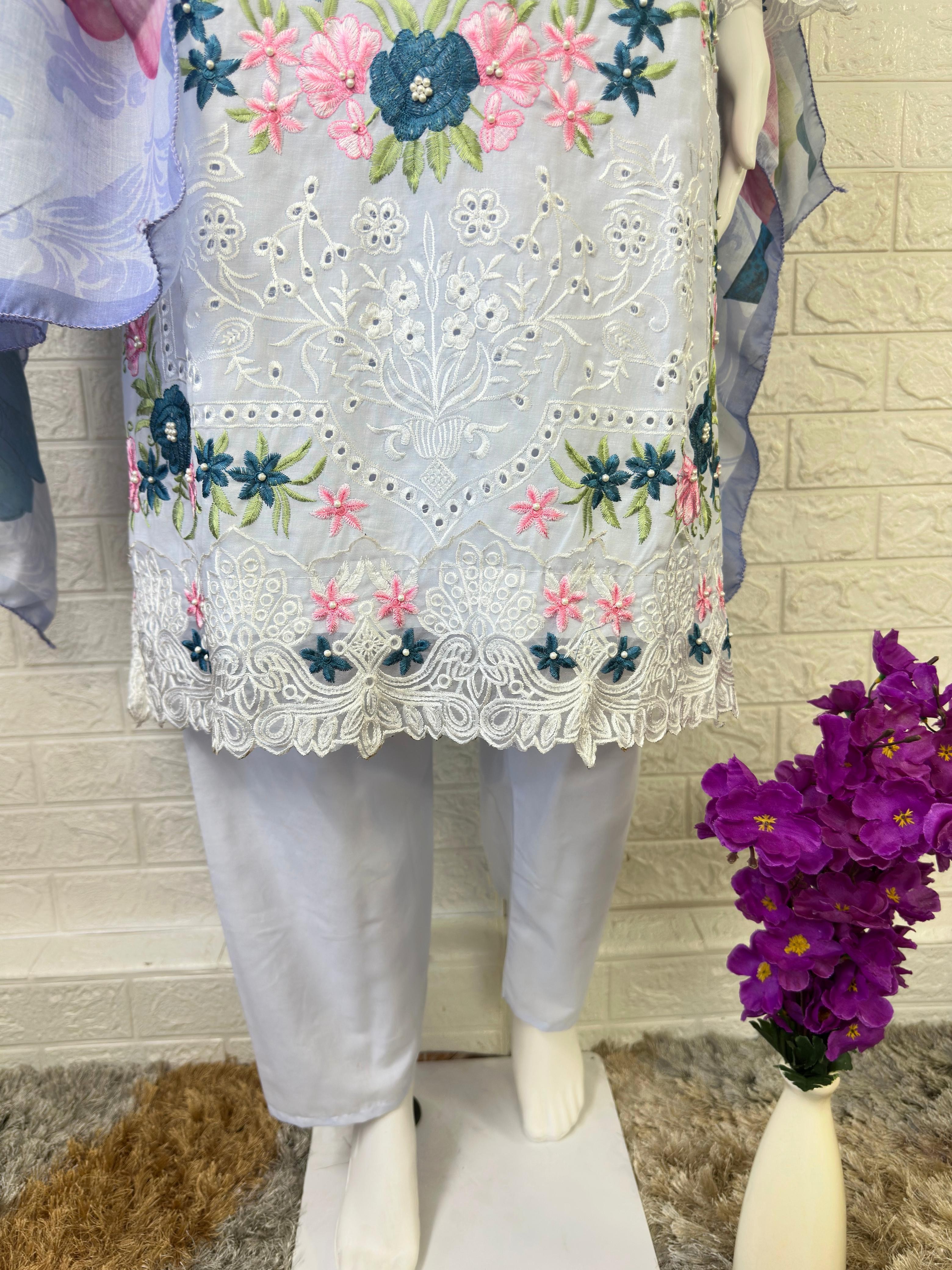 :- LAWN EMBROIDERED CHIKANKARI WORK WITH PEARL WORK