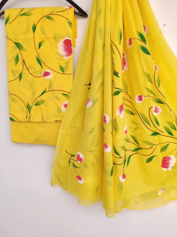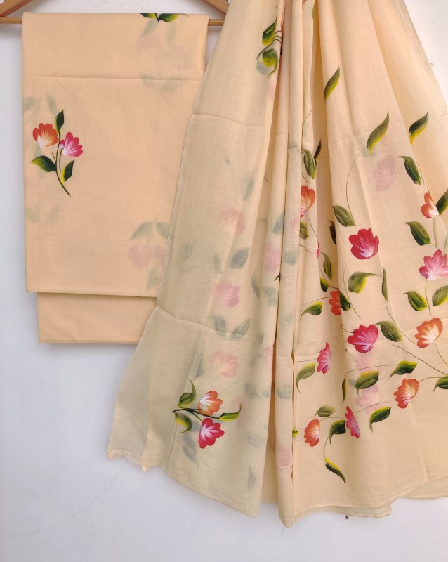 Brush Painted Cotton Suits with Pure *Mulmul* dupatta
