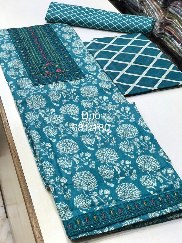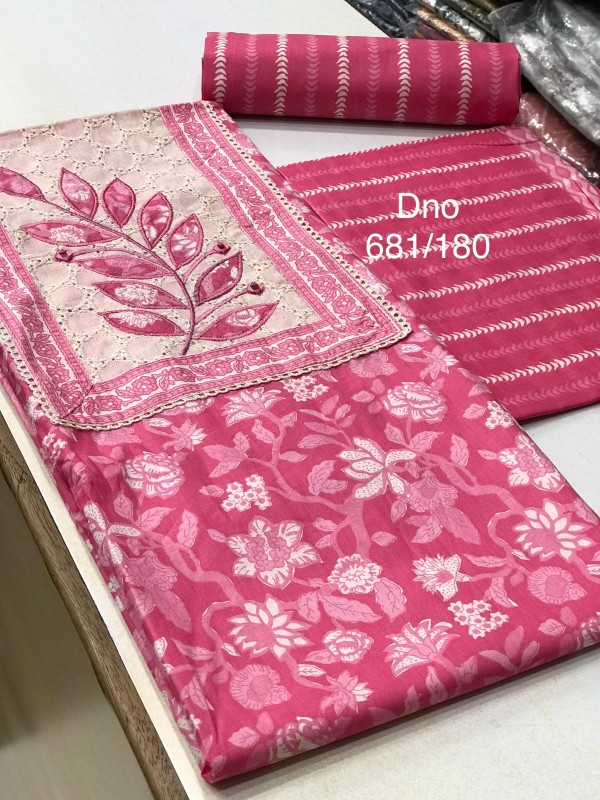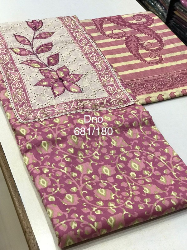 JAIPURI COTTON PRINTED TOP WITH NECK AND DAMAN PATCH WORK