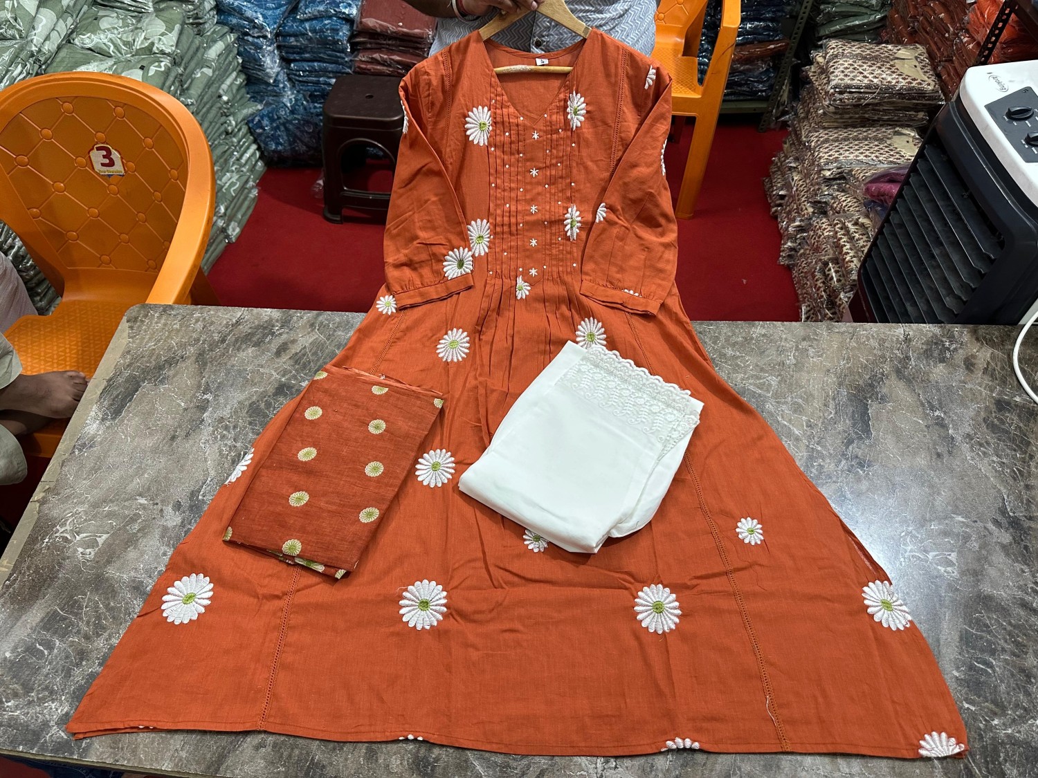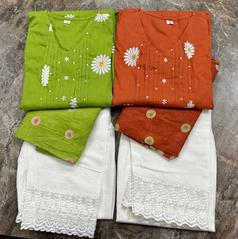 This Kurti,pant& dupatta set is perfect for the summer season with its vibrant floral print and confident . Plus, the included matching dupatta completes the look and adds an extra touch of style.