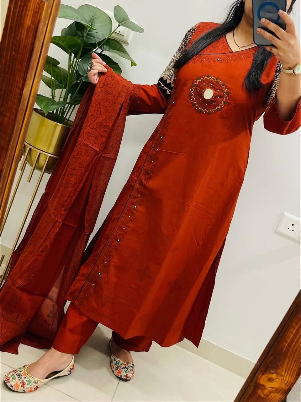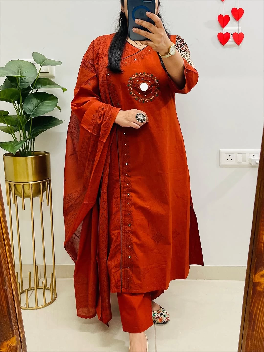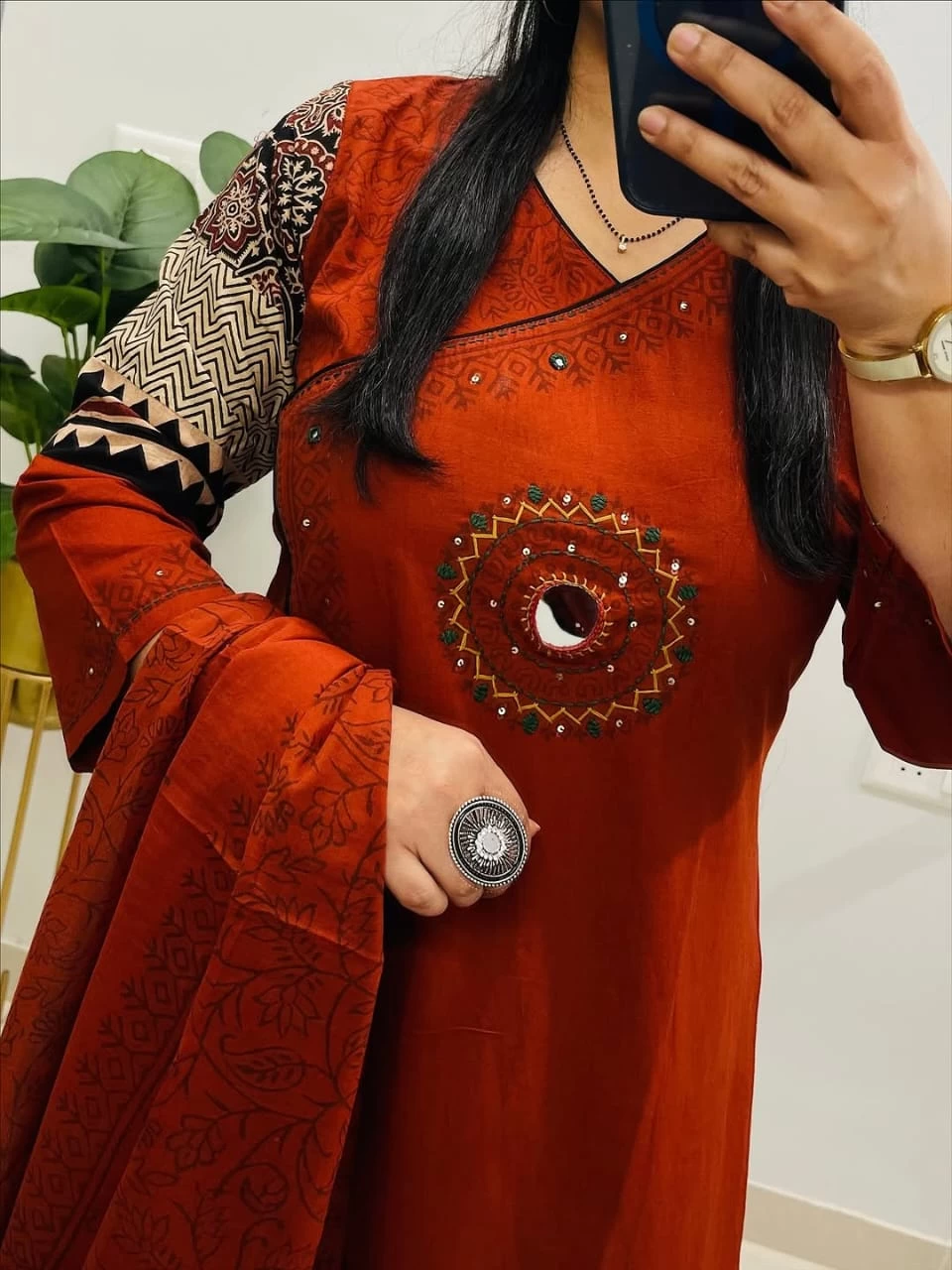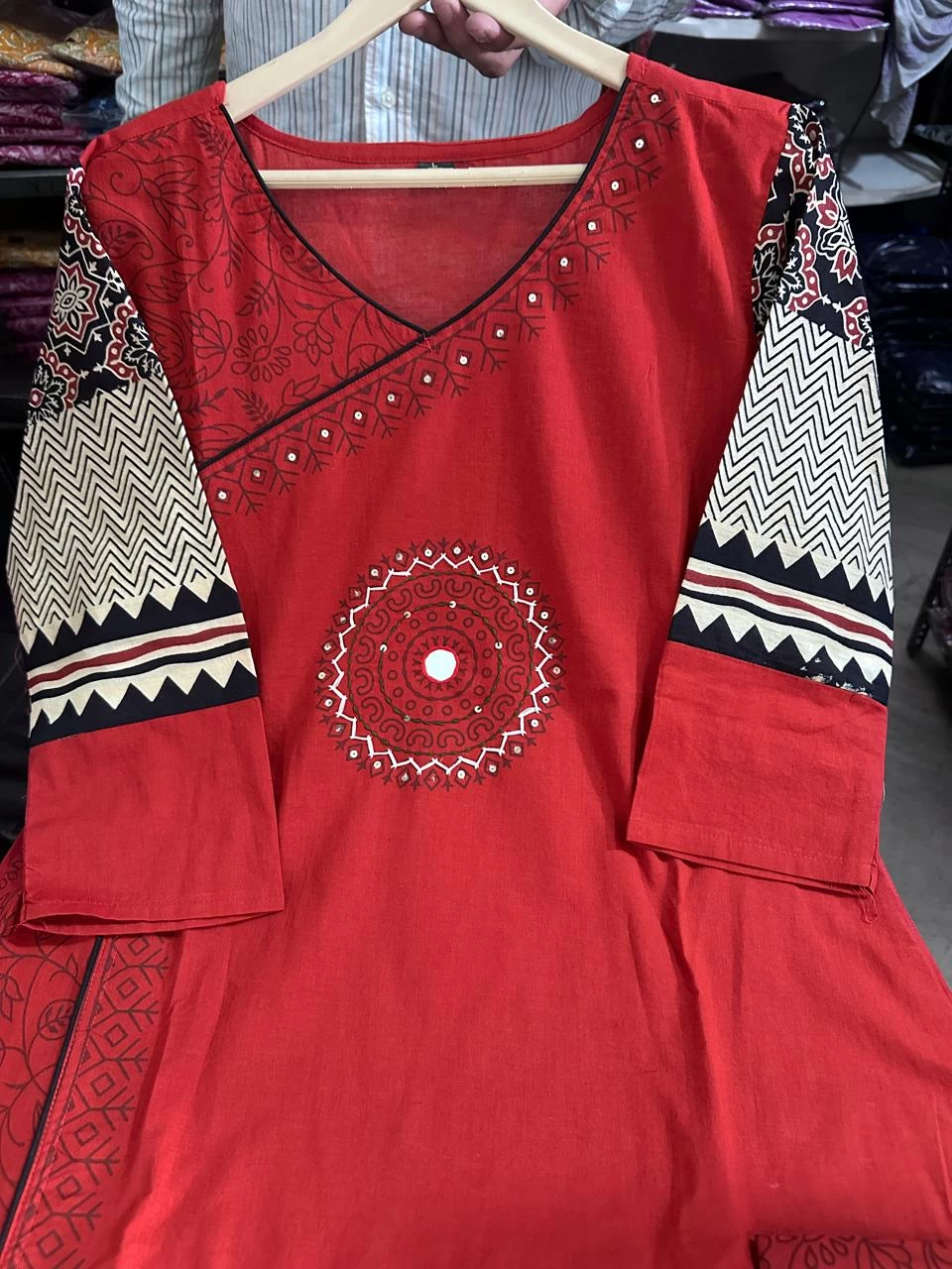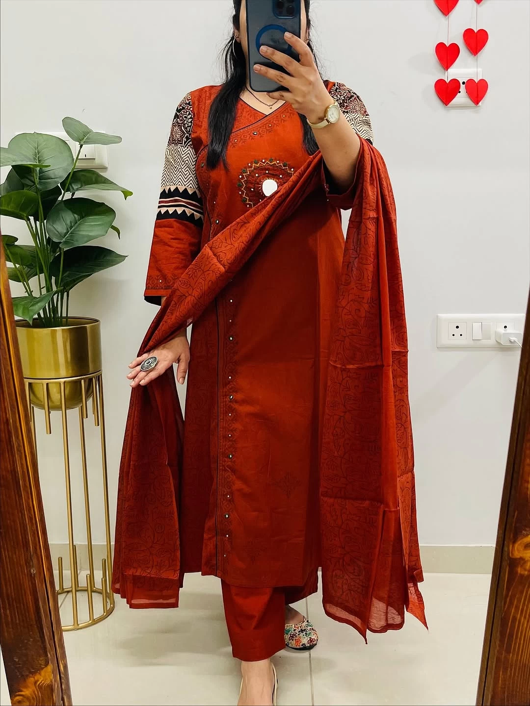 Beautiful Angrakha pure dhabu cotton kutch style suit with dabu print ? and original mirror work.