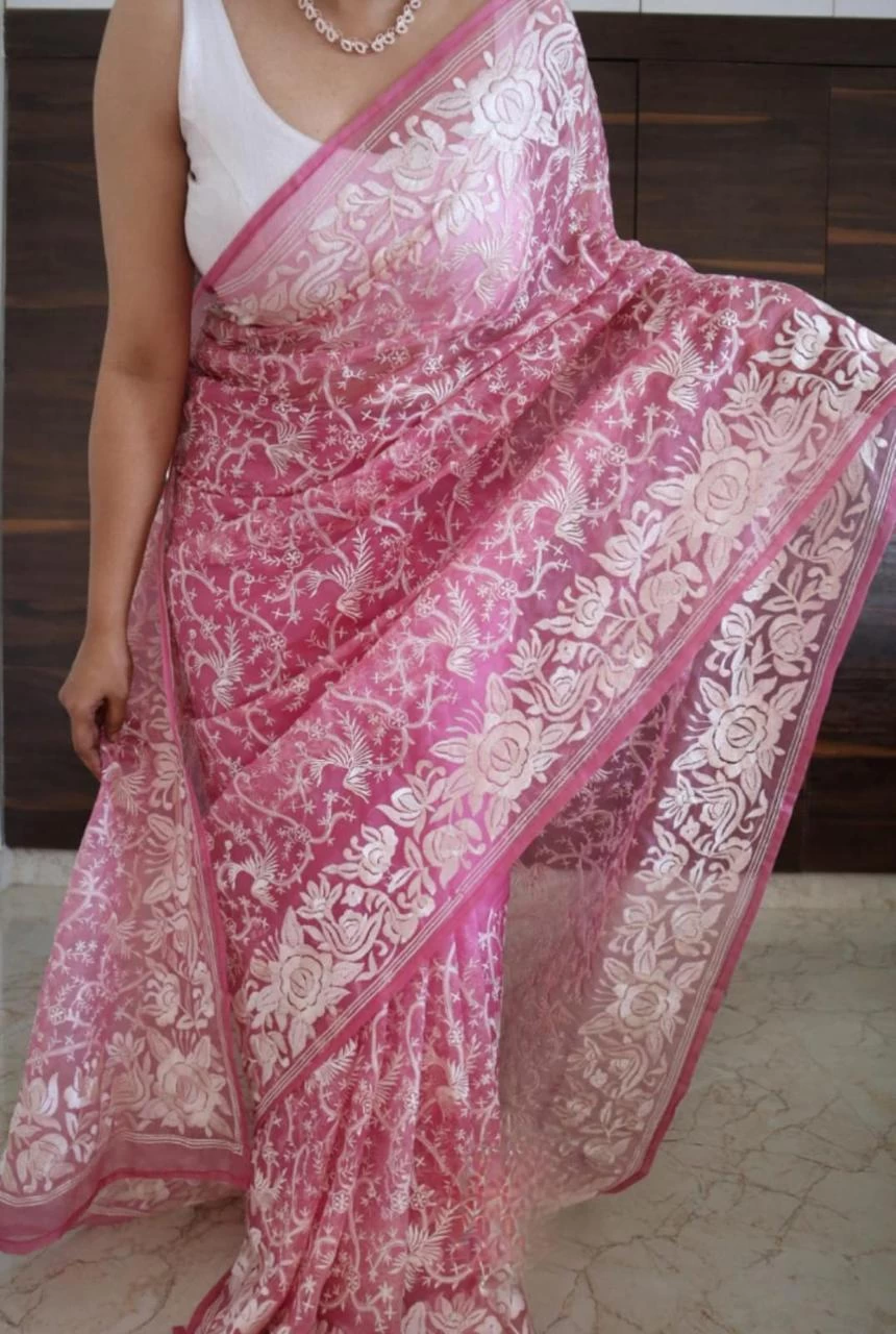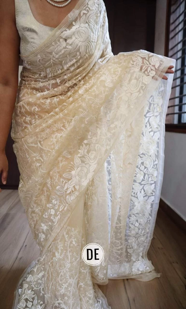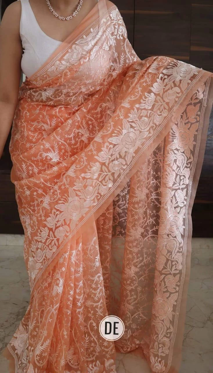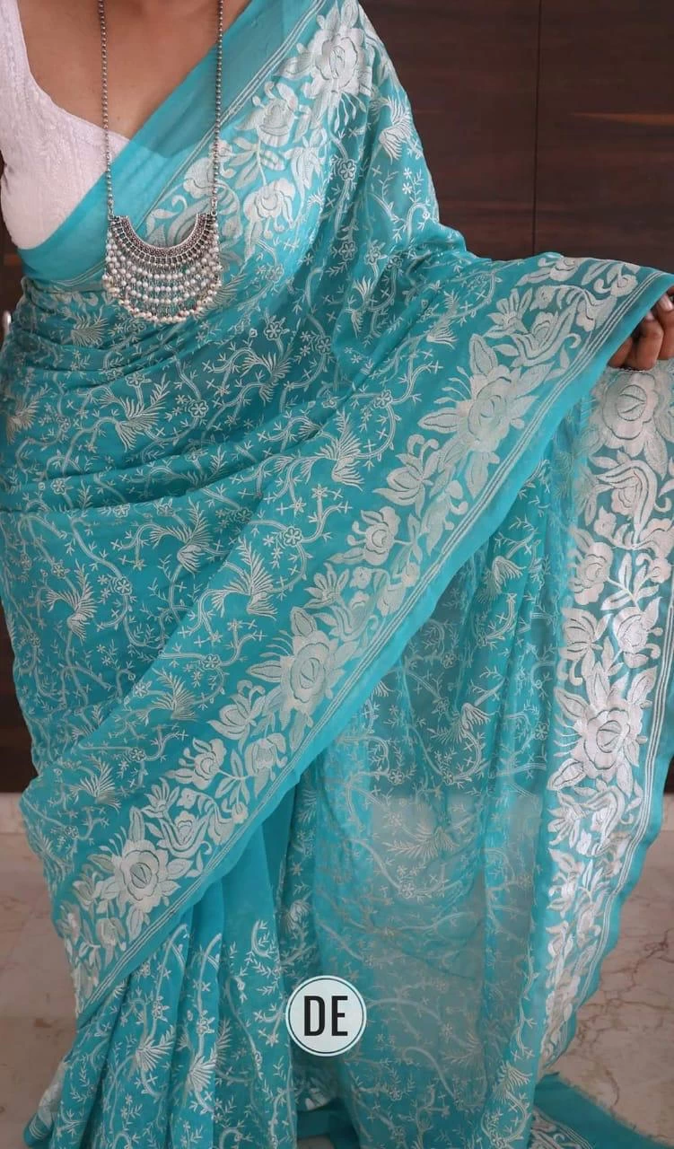 ??Organza silk saree with beautiful embroidery work