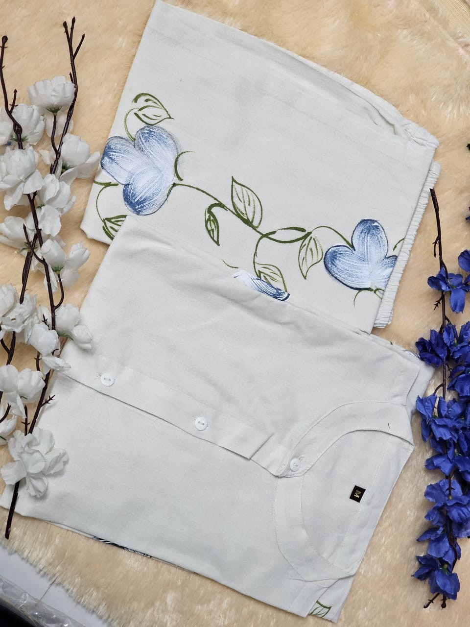 ? Beautiful pure cotton Flex fabric  Kurti with Hand brush Print work On kurti with pant set  ☺️ ???