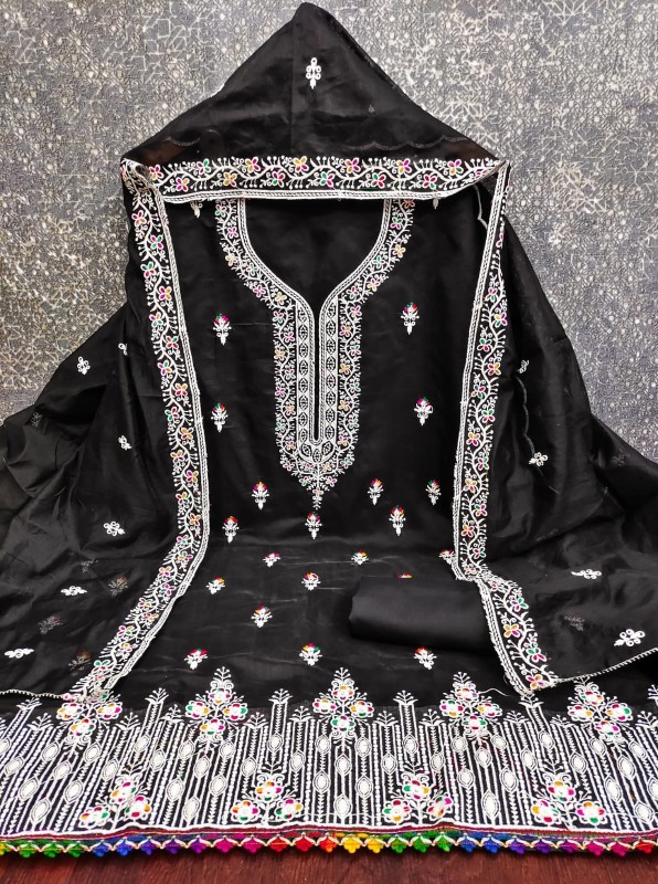 PIRN HEAVY CHANDERI NECK EMBROIDERY ? WORK 1.9 MTS