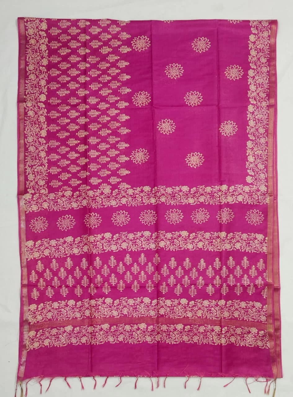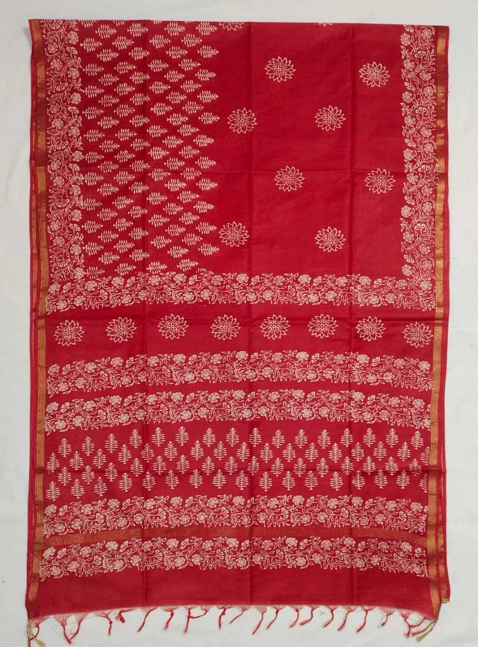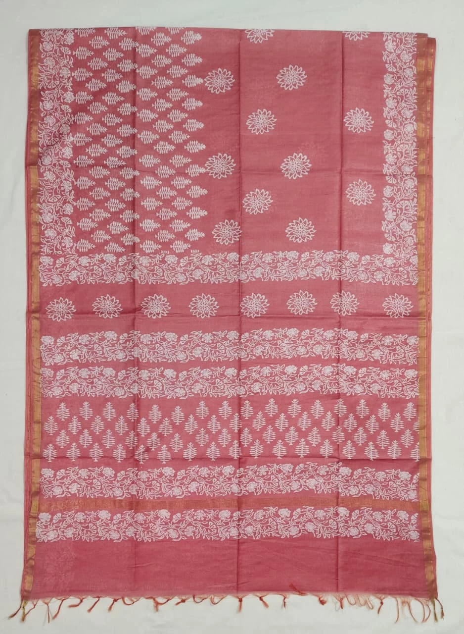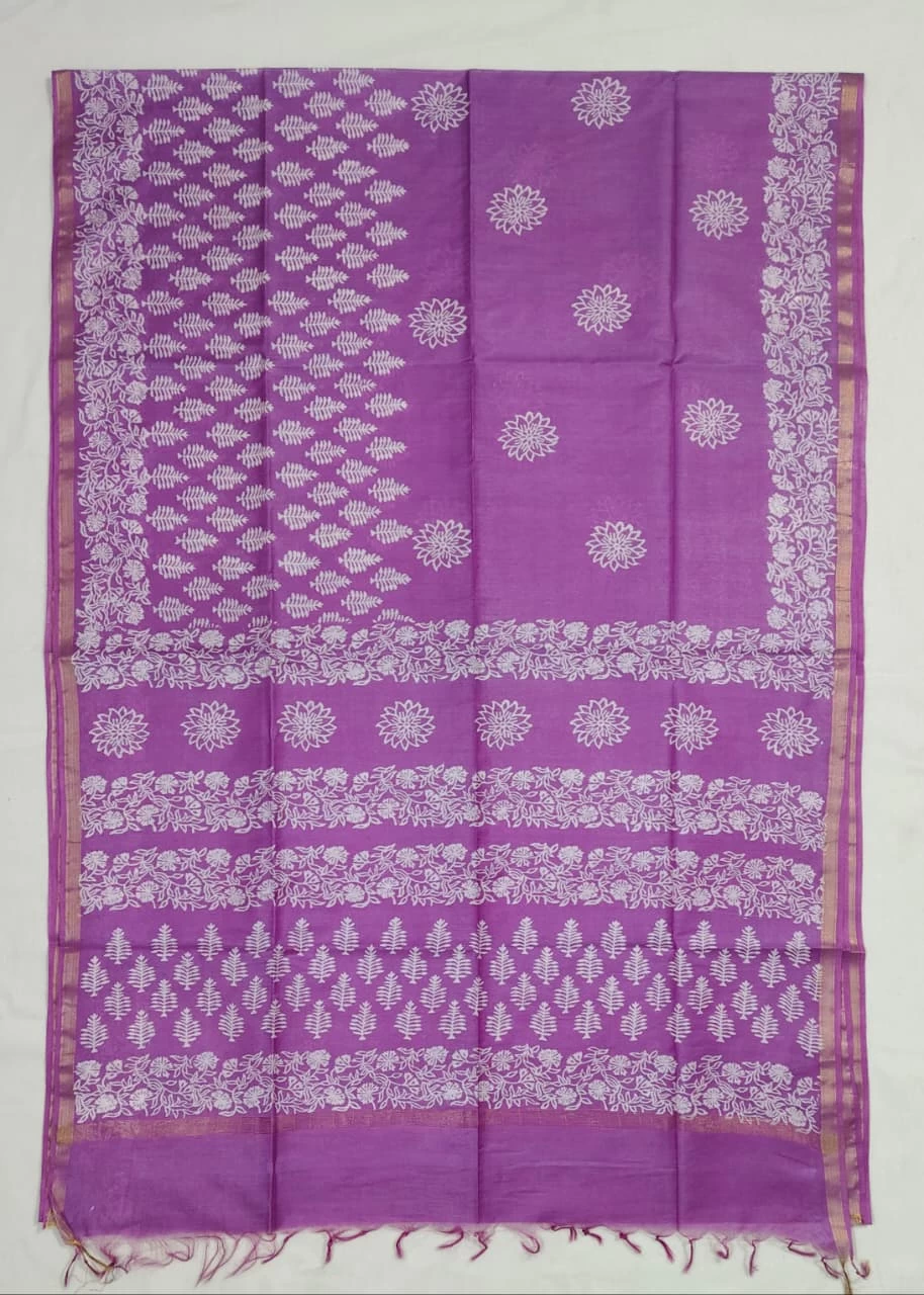 With hand block discharge print..