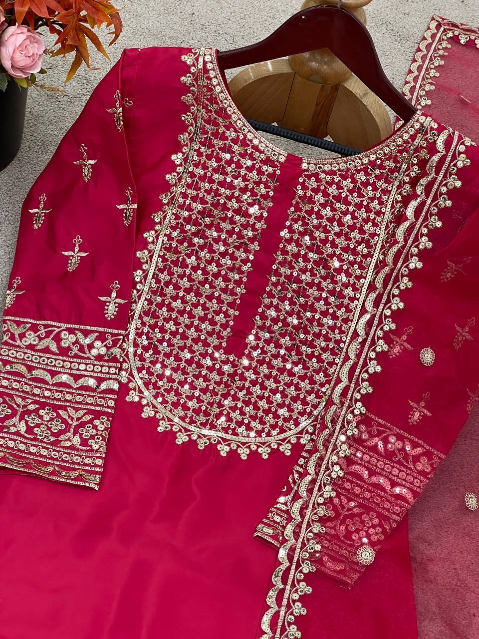 • *Fabric:* *Heavy Tissue silk with Sequence Embroidery Work*