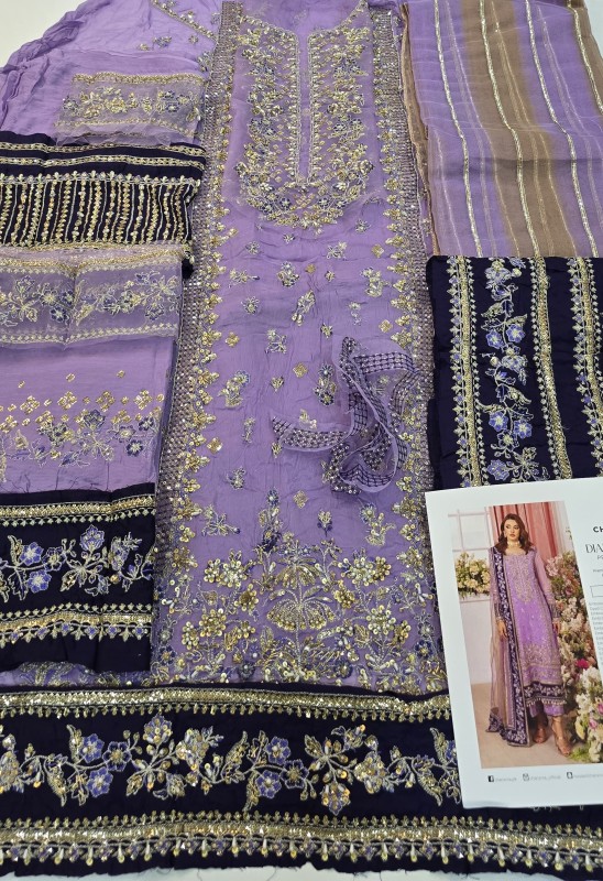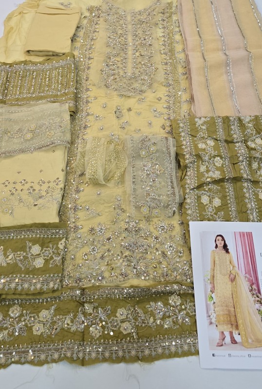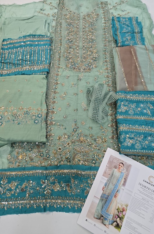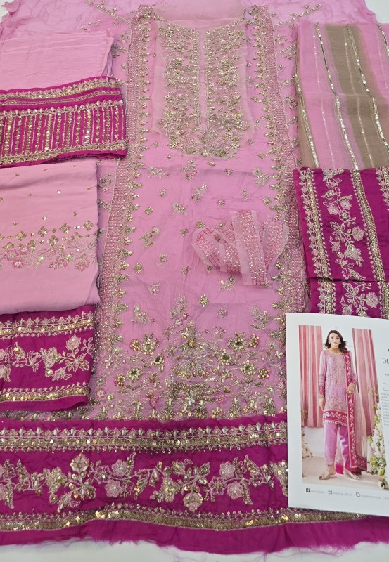 Premium Chiffon, often featuring intricate handwork and embroidery.