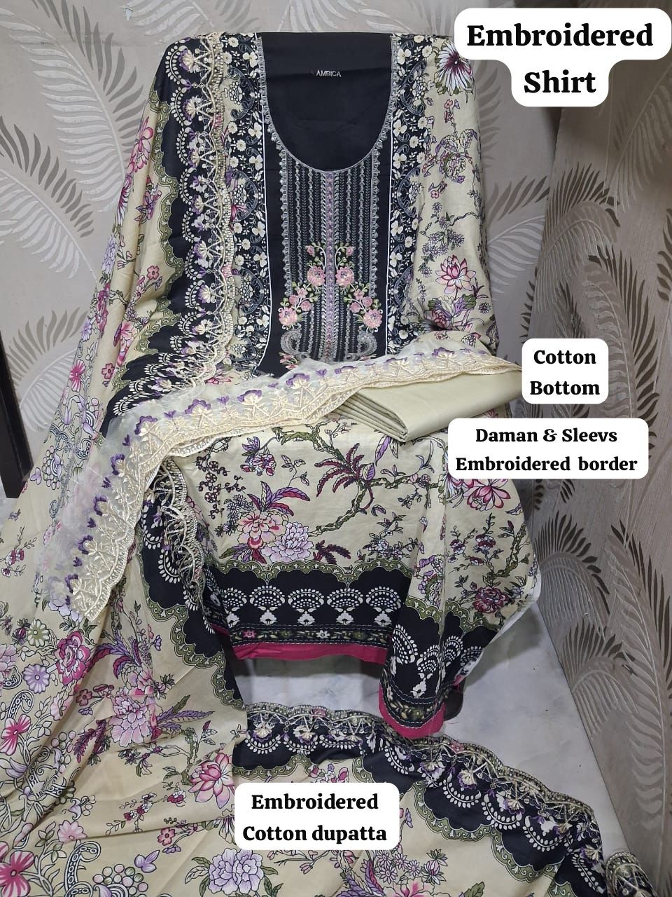 *•Cotton Printed Heavy Embroidered Lawn Shirts & daman work*