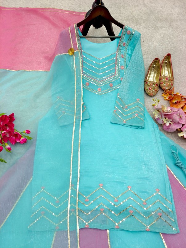 *Top Fabric* : Pure Curancy Silk With Embroidery 5mm Sequence Work With Sleeves