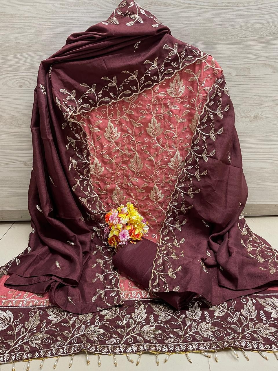 *_?TOP:- Vichitra SILK WITH FULKARI EMBROIDERY WORK & TUSSLE 2.50MTR._*