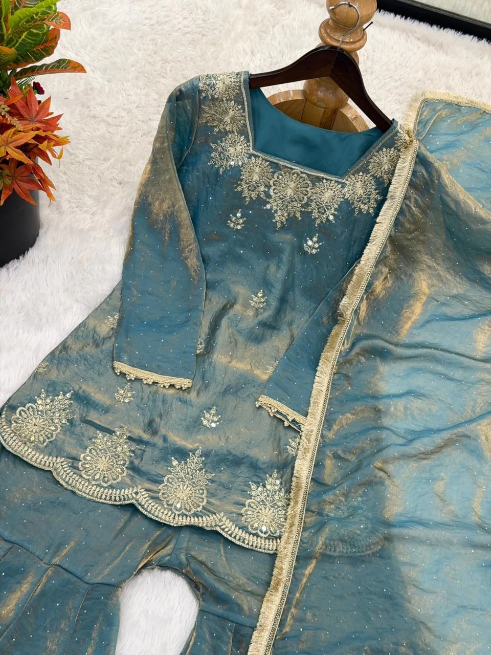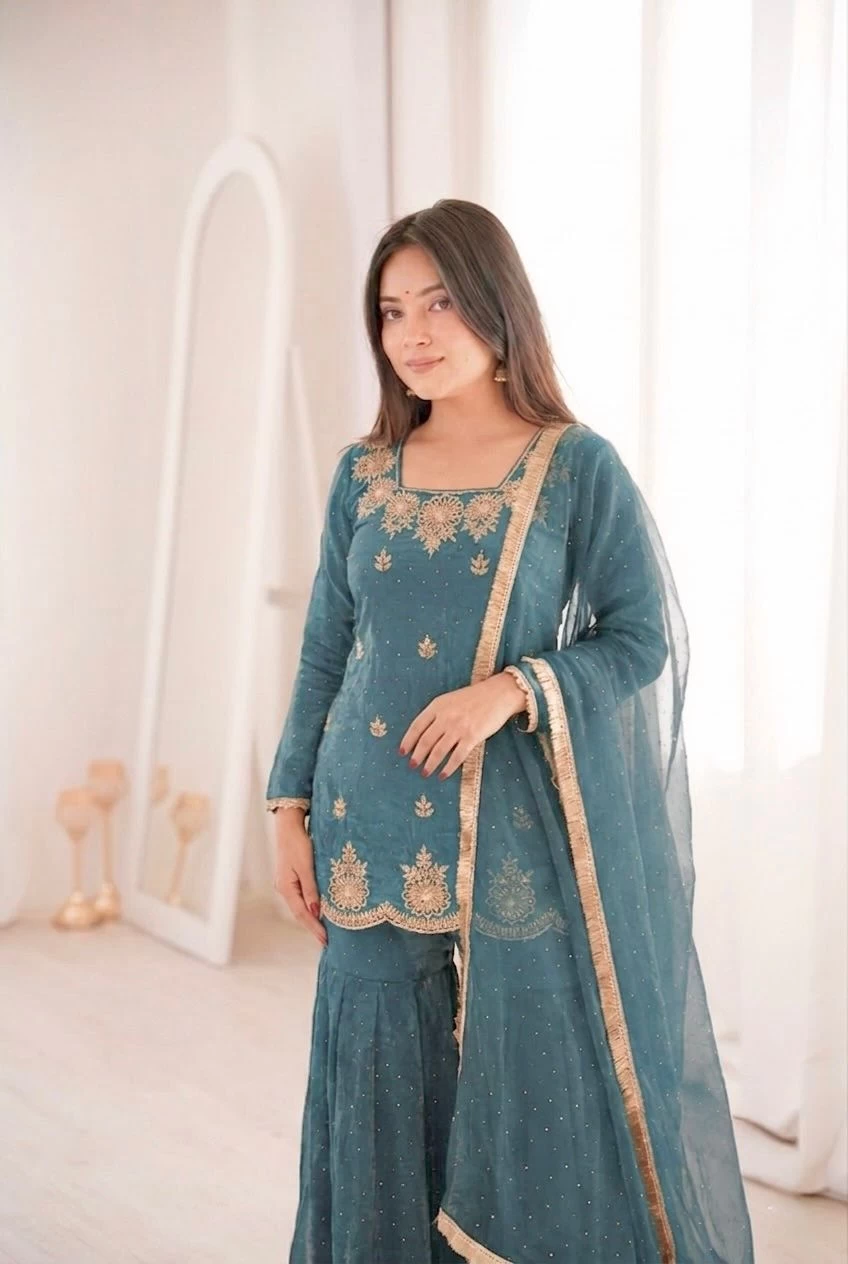 * Design: Embroidery Sequence Work With Zarkan Diamond Work