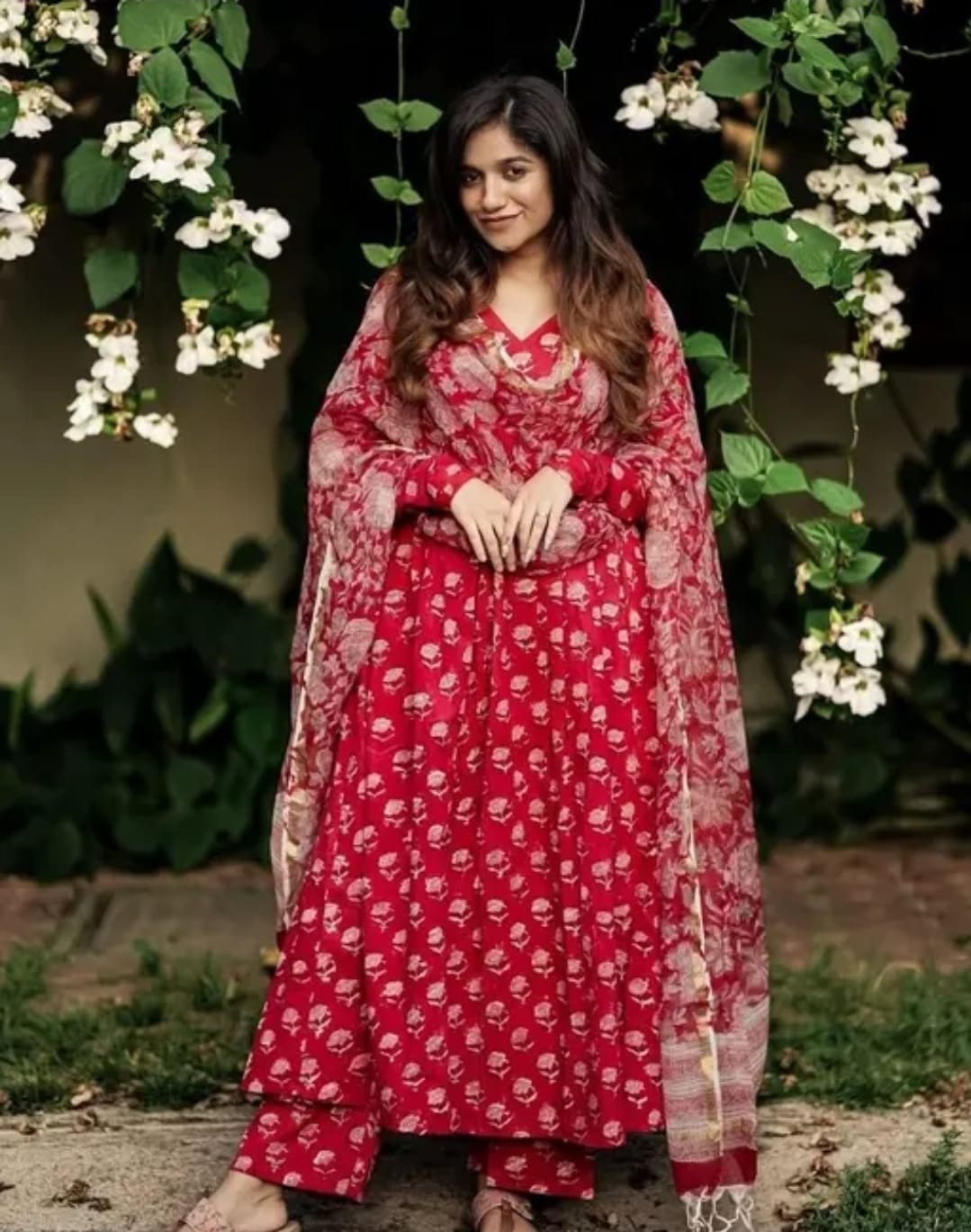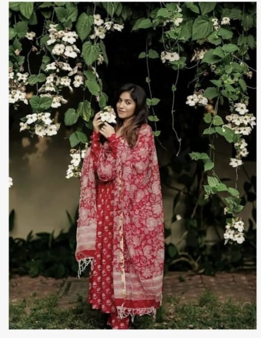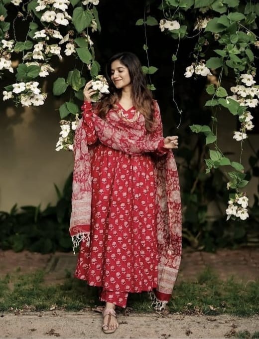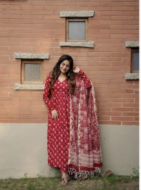 ELEVATE UR STYLE IN OUR CLASSY COTTON ANARKALI SET WITH COTTON MALMAL DUPATTA IS MUST HAVE IN EVERY CLOSET