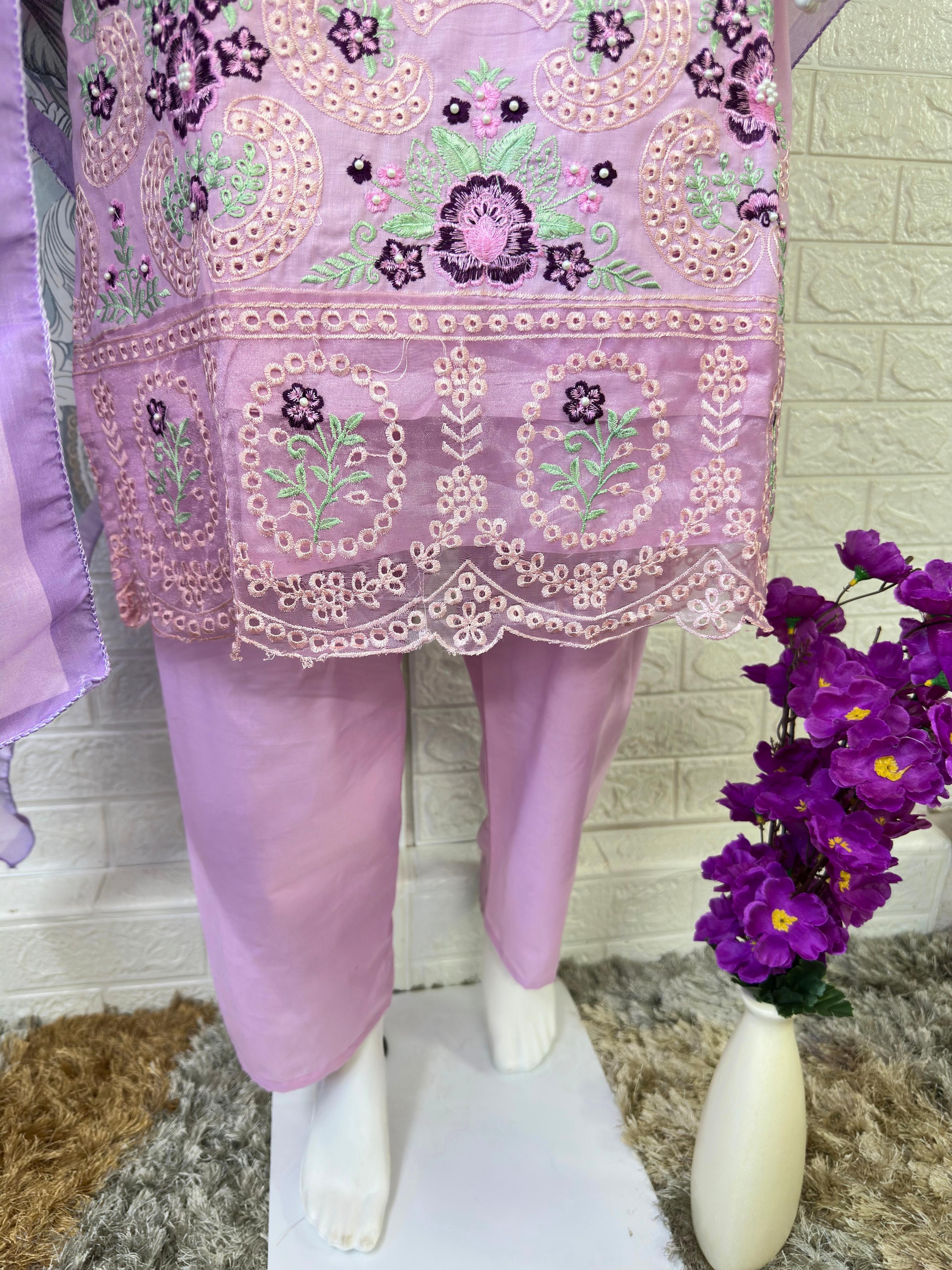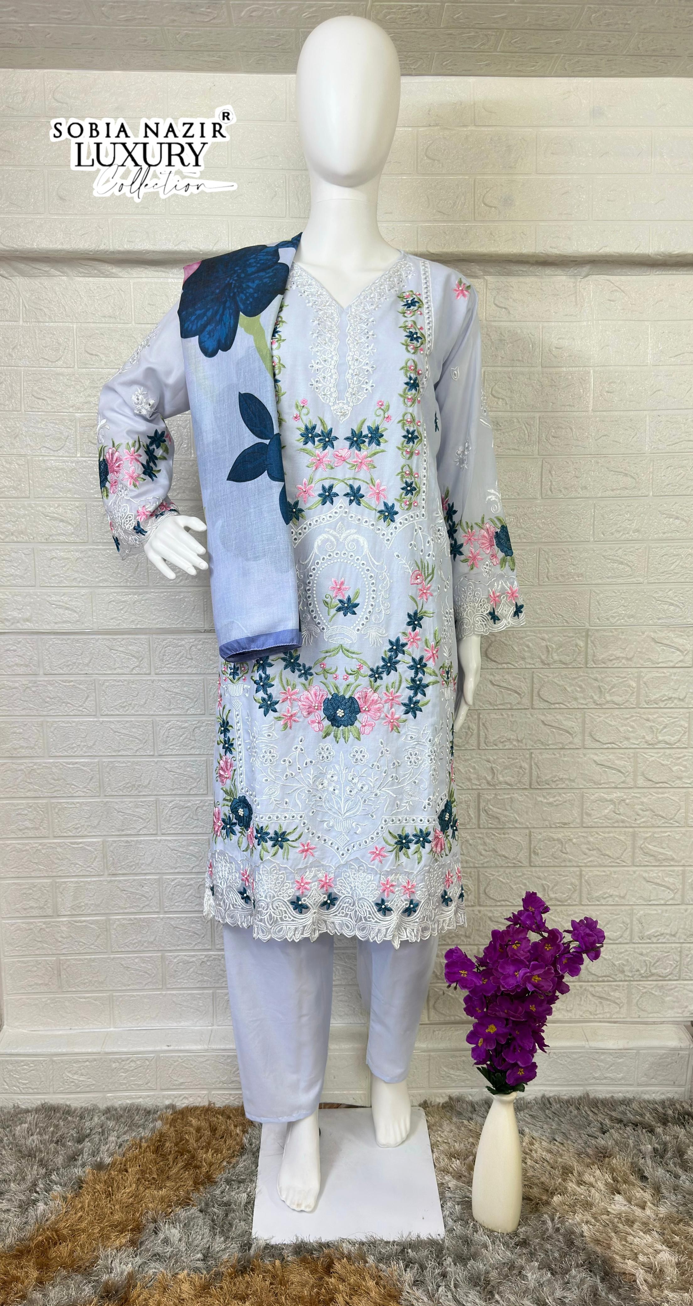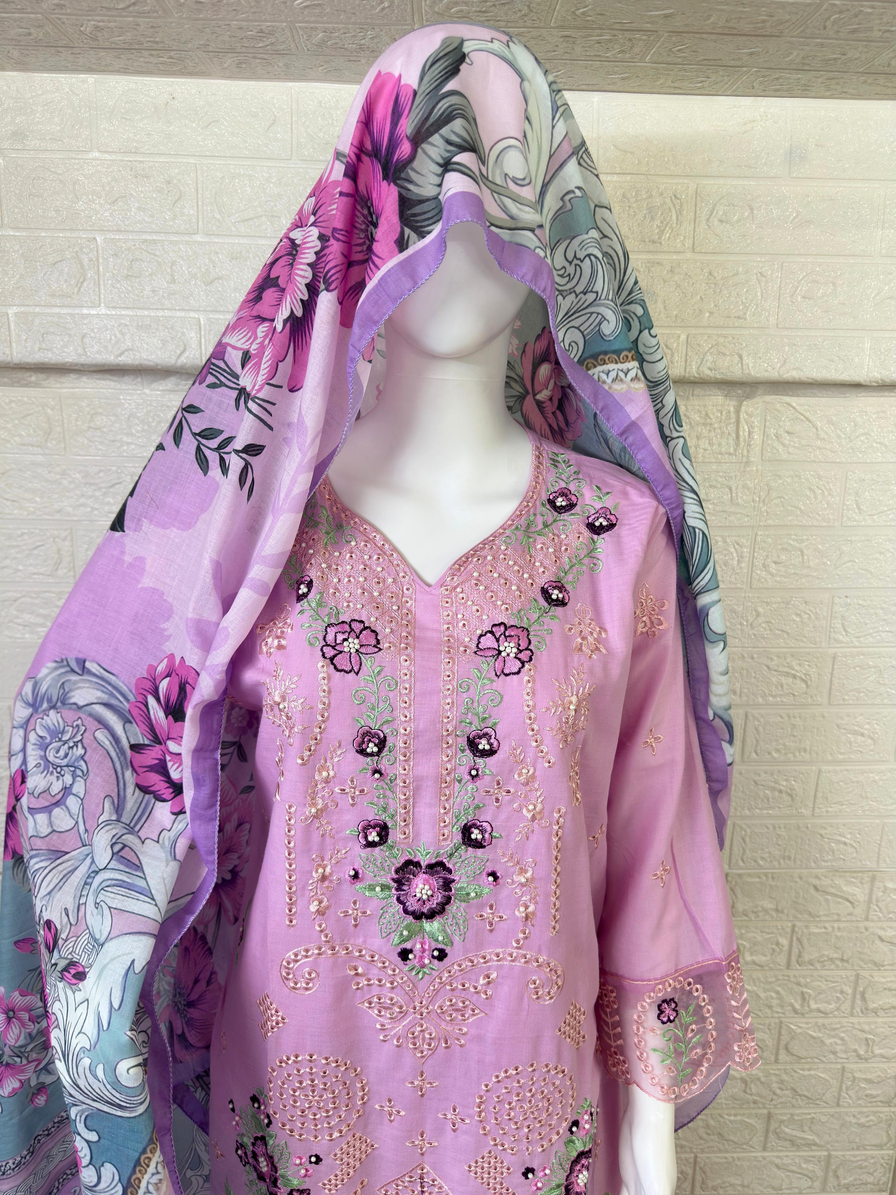 :- LAWN EMBROIDERED CHIKANKARI WORK WITH PEARL WORK