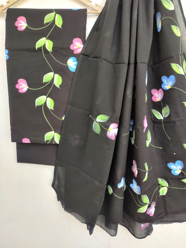 Brush Painted Cotton Suits with Pure *Mulmul* dupatta