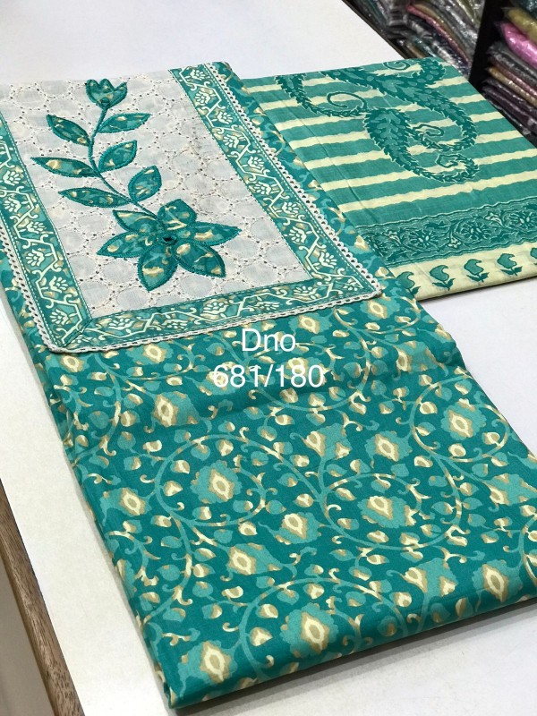 JAIPURI COTTON PRINTED TOP WITH NECK AND DAMAN PATCH WORK