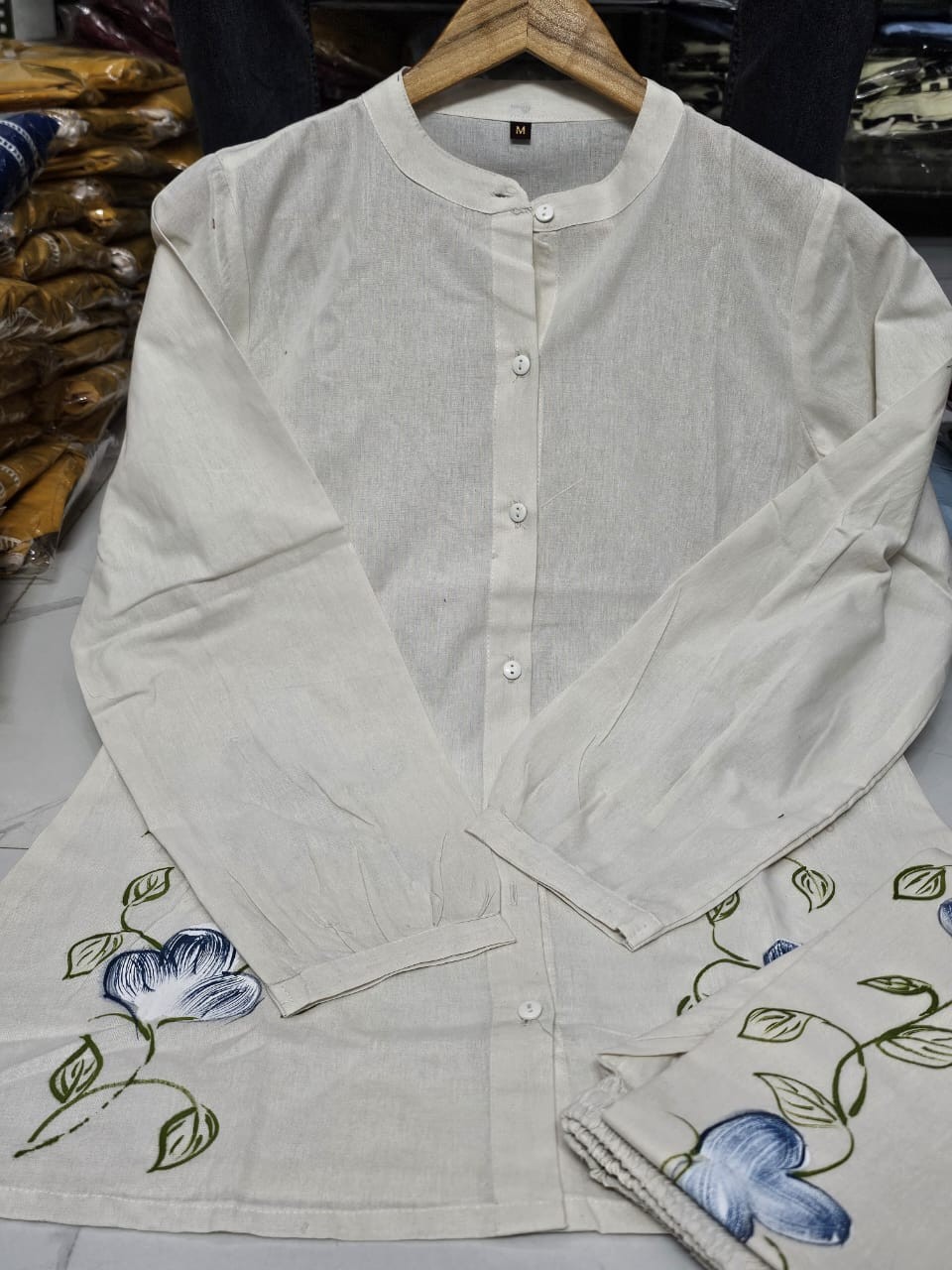 ? Beautiful pure cotton Flex fabric  Kurti with Hand brush Print work On kurti with pant set  ☺️ ???