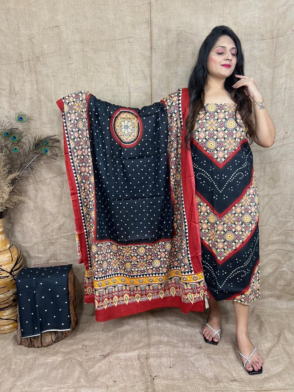 Soft rayon ajrakh printed suits