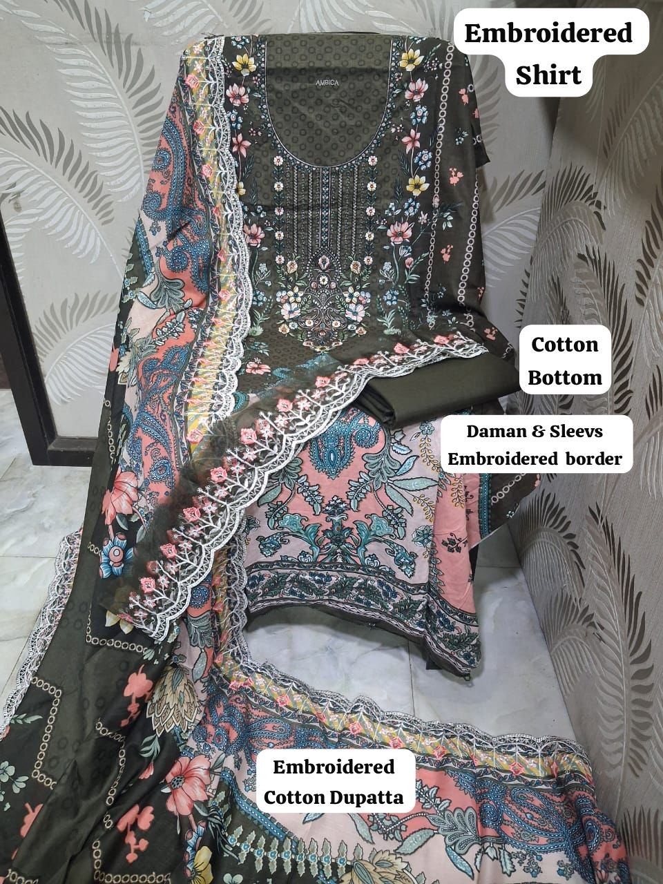 *•Cotton Printed Heavy Embroidered Lawn Shirts & daman work*
