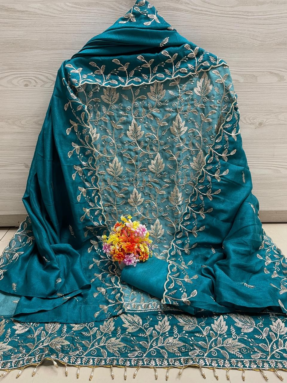 *_?TOP:- Vichitra SILK WITH FULKARI EMBROIDERY WORK & TUSSLE 2.50MTR._*